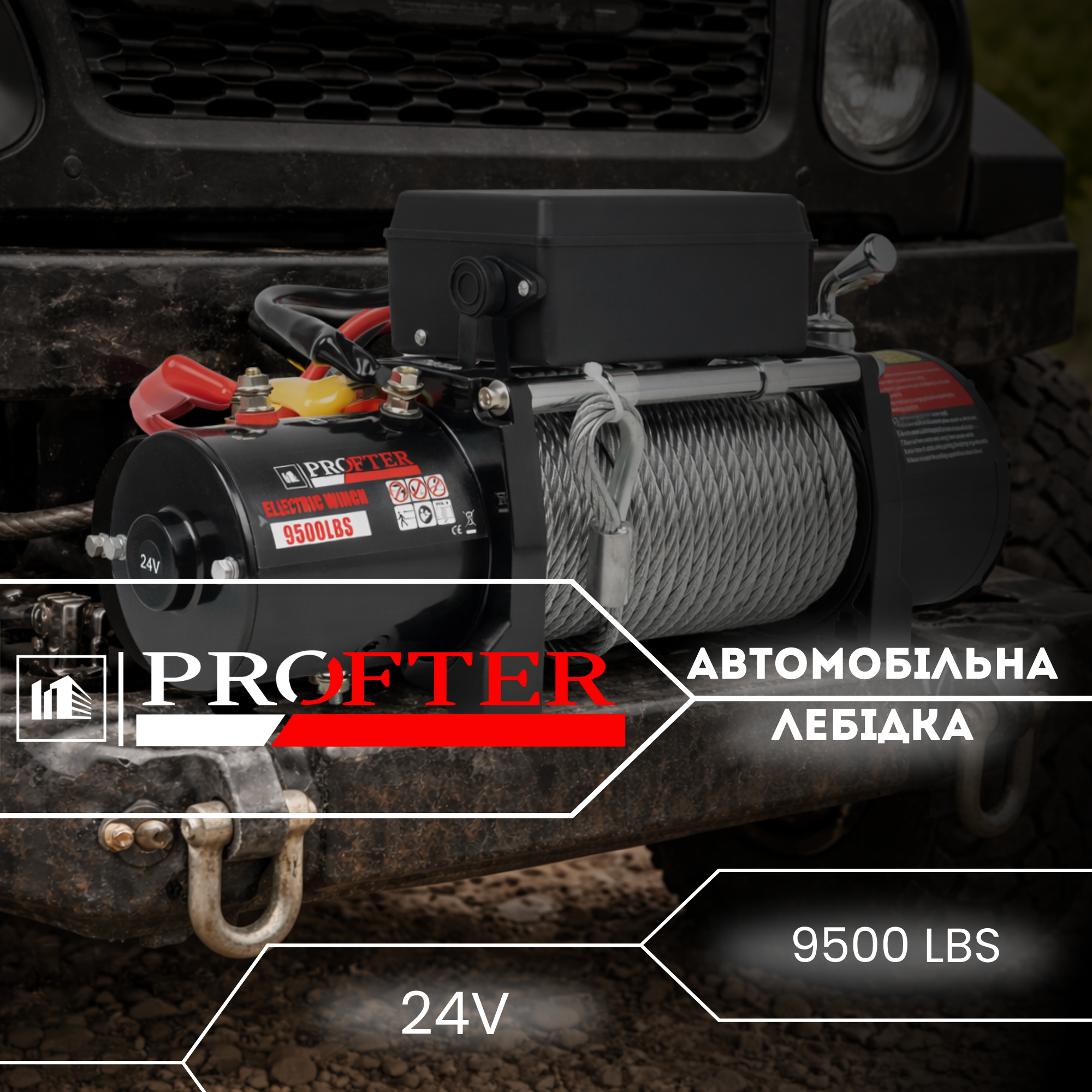 Лебідка автомобільна Profter 9500 LBS 24V (тягове зусилля 4309 кг)