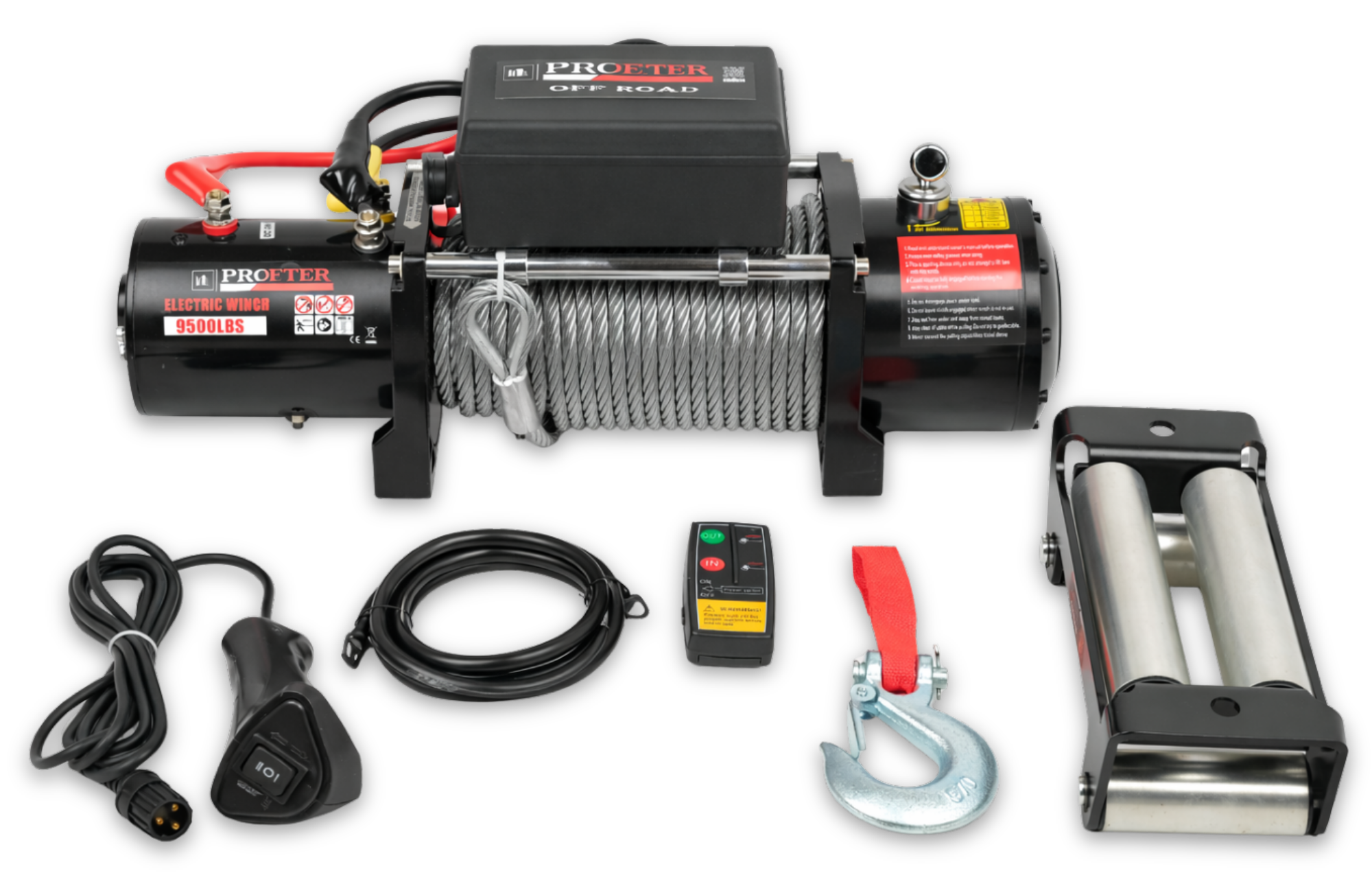 Лебідка Profter 9500 LBS 24V постачається з усім необхідним для швидкого і надійного встановлення. В комплект входять: