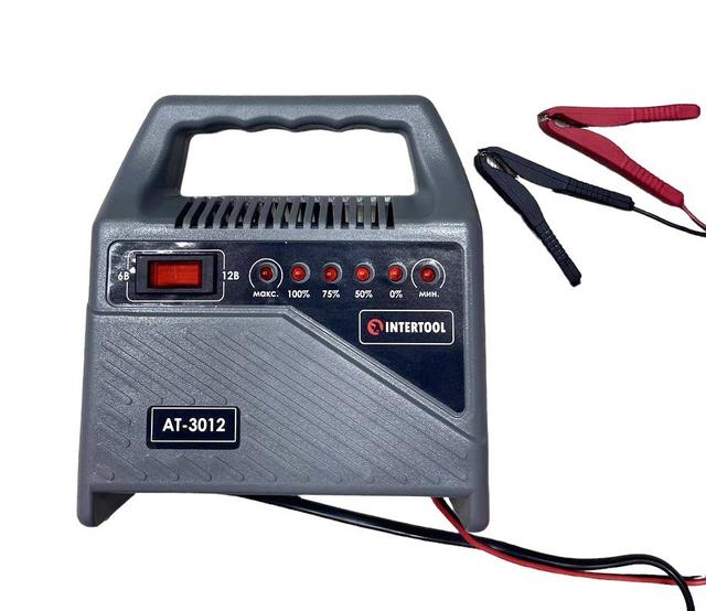 Зарядним пристроєм AT-3012 INTERTOOL можна заряджати акумуляторні батареї 6В та 12В.